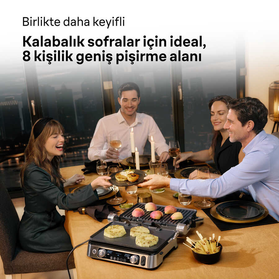 8 kişiye kadar yemek hazırlamanız için size geniş bir ızgara alanı sunar. *MultiGrill 7'den %27 daha büyüktür